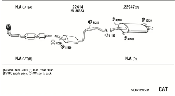 VOLVO S40 I (644) 1.8 LPG - Výfukový systém - kompletní od 3/1999 do 12/2004, 1783 ccm, 90 kW, 122 hp, B 4184 S9, limuzína