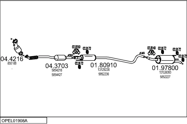 OPEL ASTRA G CLASSIC (T98) 1.7 CDTI (F08, F48) - Výfukový systém - kompletní od 6/2004 do 7/2009, 1686 ccm, 59 kW, 80 hp, Z 17 DTL, Šikmá zadní část