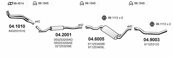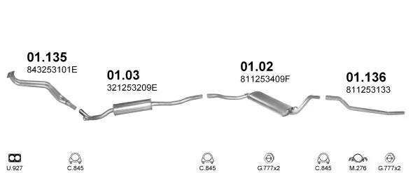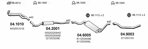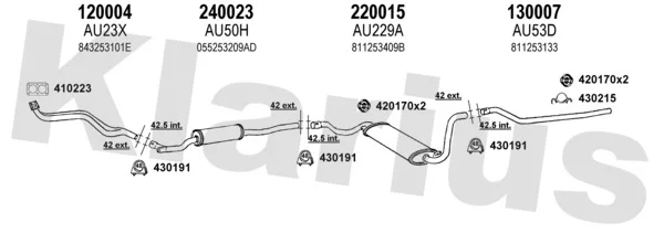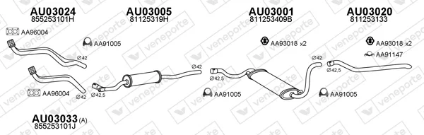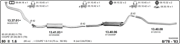 AUDI COUPE B2 (81, 855, 856) 1.6 - Výfukový systém - kompletní od 7/1980 do 8/1981, 1588 ccm, 55 kW, 75 hp, YN, kupé
