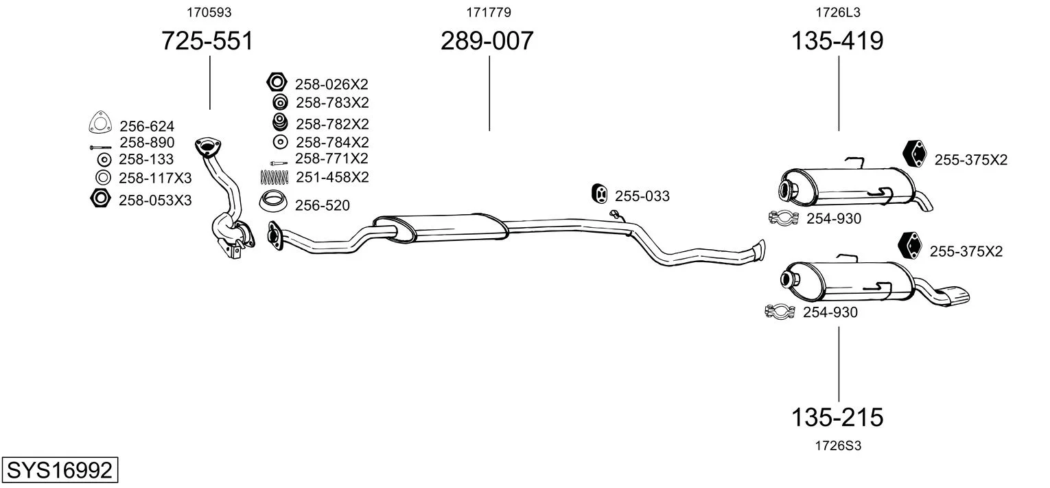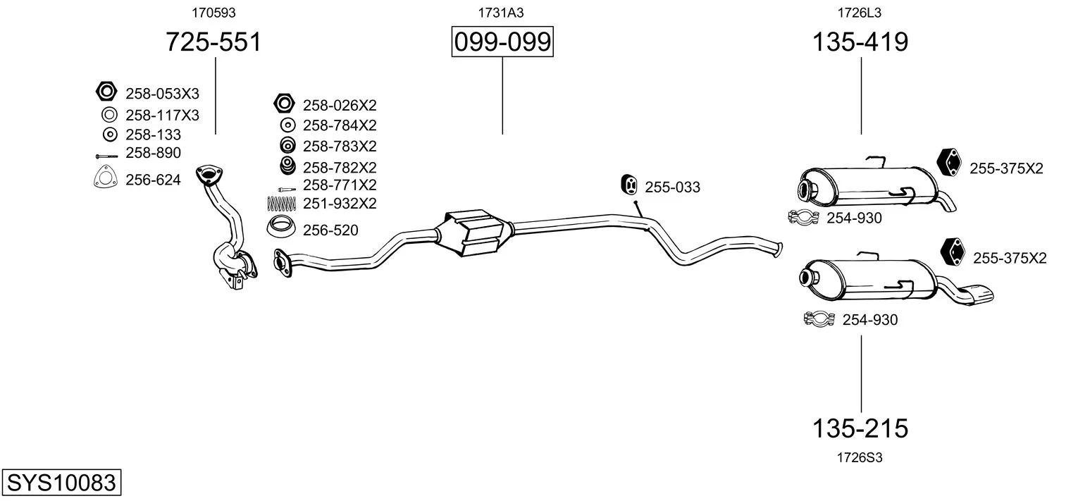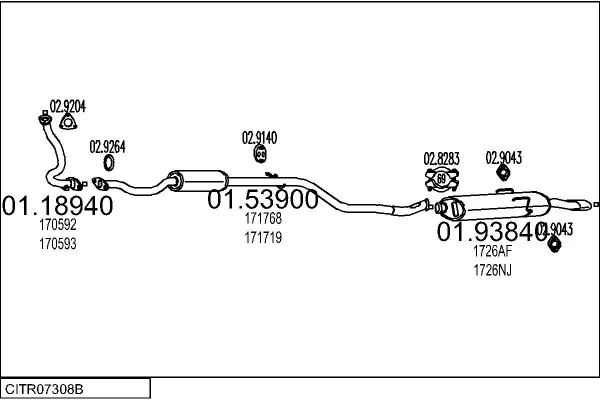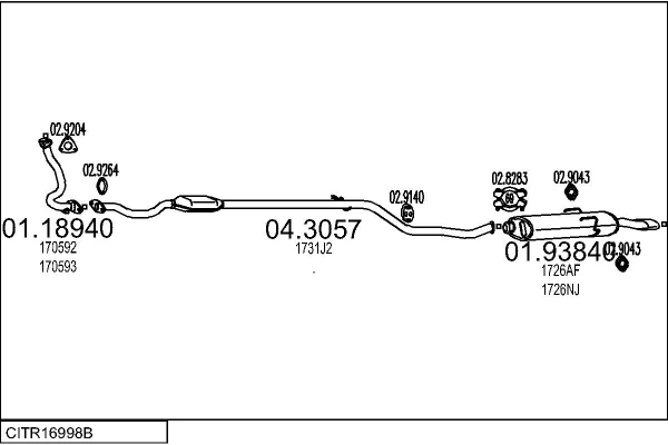CITROËN SAXO Hatchback van (S3_) 1.5 D - Výfukový systém - kompletní od 8/1999 do 6/2001, 1527 ccm, 42 kW, 57 hp, VJZ (TUD5), Schránky/šikmá záď
