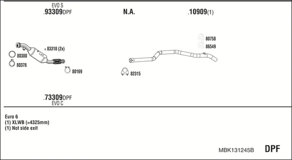 MERCEDES-BENZ SPRINTER 3,5-t Tourer Bus (B907) 316 CDI (907.731, 907.733, 907.735) - Výfukový systém - kompletní od 2/2018 do 12/2021, 2143 ccm, 120 kW, 163 hp, OM 651.958, autobus