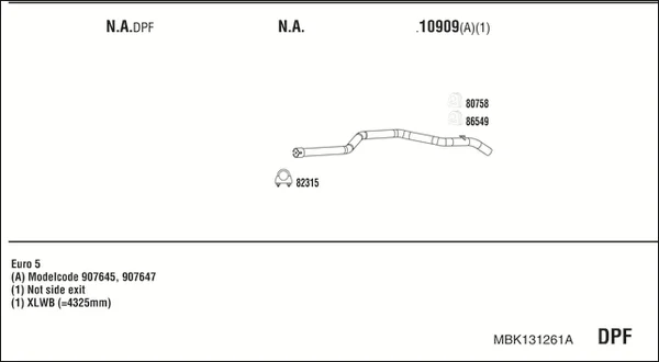 MERCEDES-BENZ SPRINTER 4-t Krabice (B907, B910) 416 CDI RWD (907.643, 907.645, 907.647) - Výfukový systém - kompletní od 2/2018 do 12/2021, 2143 ccm, 120 kW, 163 hp, OM 651.958, Krabice
