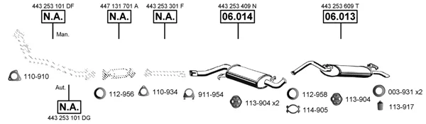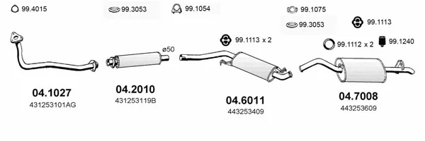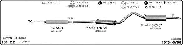 AUDI 100 C3 limuzína (443, 444) 2.2 - Výfukový systém - kompletní od 10/1984 do 9/1986, 2226 ccm, 85 kW, 115 hp, KZ, limuzína
