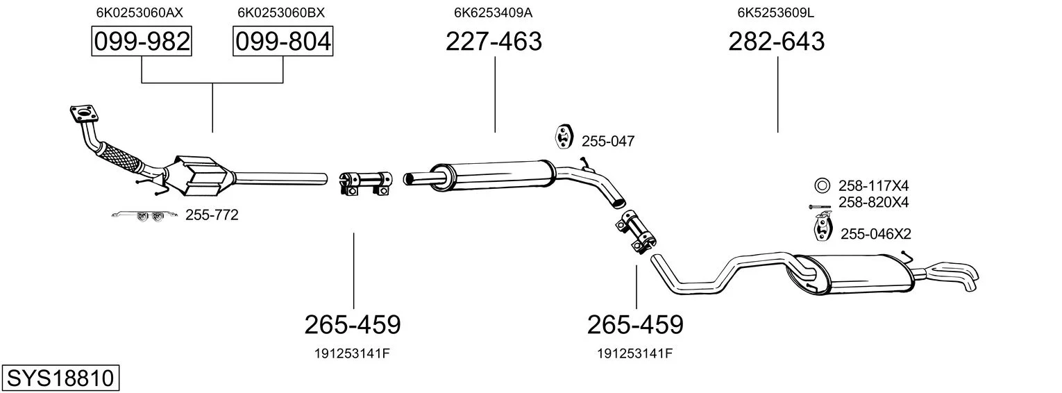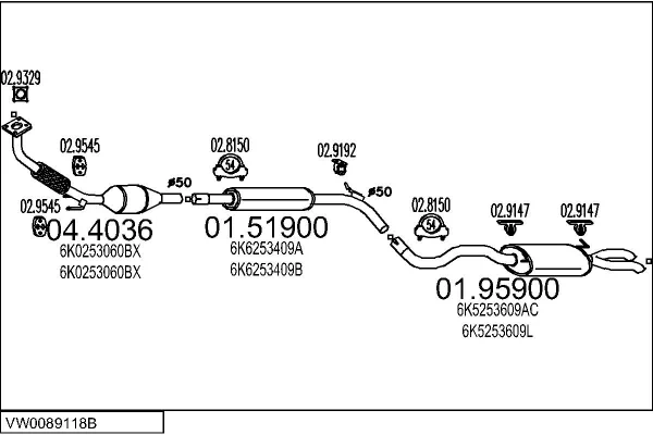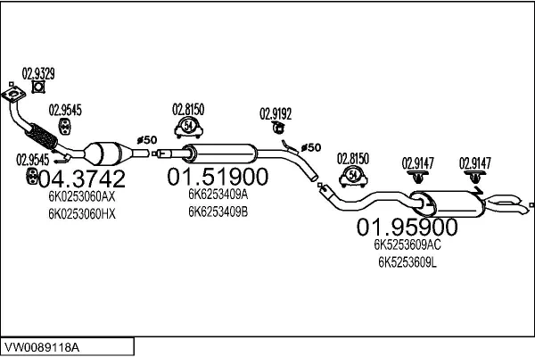 VW POLO Van karoserie/kombi (6V5) 1.9 SDI - Výfukový systém - kompletní od 10/1999 do 9/2001, 1896 ccm, 50 kW, 68 hp, AGP, AQM, karoserie/kombi