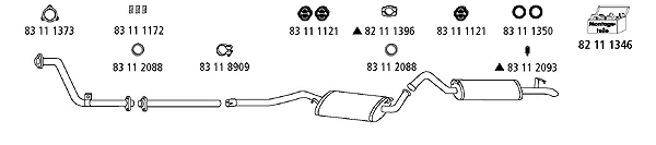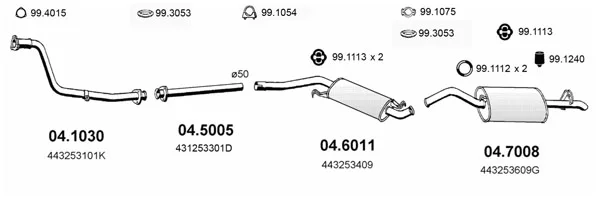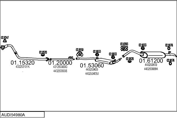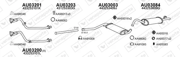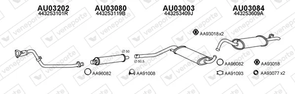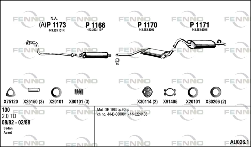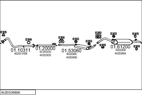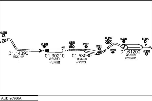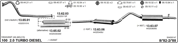 AUDI 100 C3 limuzína (443, 444) 2.0 D Turbo - Výfukový systém - kompletní od 8/1982 do 7/1988, 1986 ccm, 64 kW, 87 hp, DE, limuzína