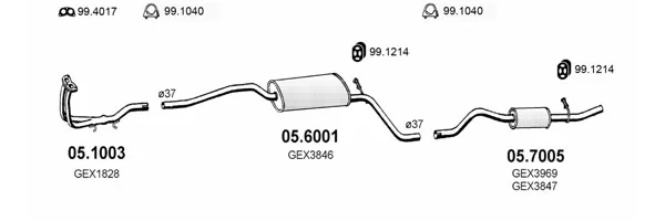 ROVER MAESTRO Šikmá zadní část 1.3 - Výfukový systém - kompletní od 9/1990 do 1/1995, 1275 ccm, 49 kW, 67 hp, 12 HE, Šikmá zadní část