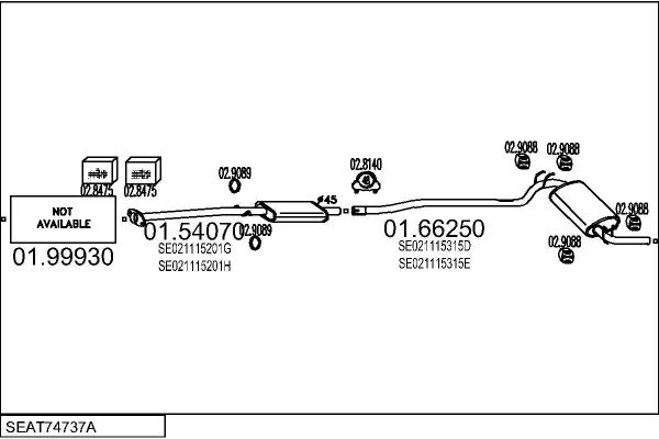 SEAT IBIZA I (21A) 1.5 - Výfukový systém - kompletní od 10/1986 do 5/1993, 1461 ccm, 64 kW, 87 hp, 1500A, Šikmá zadní část