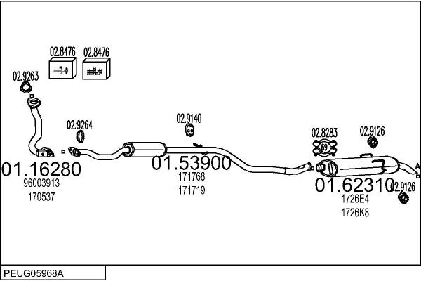 PEUGEOT 106 Van I Schránky/šikmá záď (1S_) 1.4 D - Výfukový systém - kompletní od 8/1991 do 3/1996, 1360 ccm, 37 kW, 50 hp, K9Y (TUD3Y), Schránky/šikmá záď