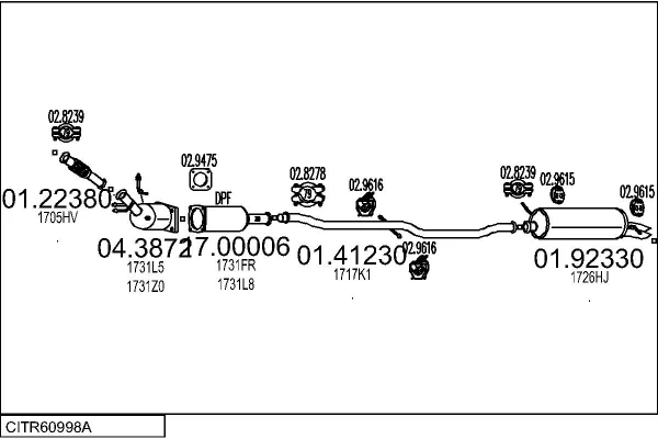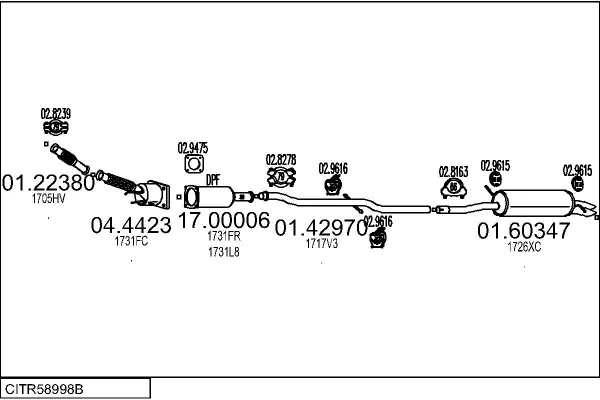 CITROËN C5 I karoserie/kombi (DE_) 2.2 HDi (DE4HXB, DE4HXF) - Výfukový systém - kompletní od 6/2002 do 8/2004, 2179 ccm, 98 kW, 133 hp, , karoserie/kombi