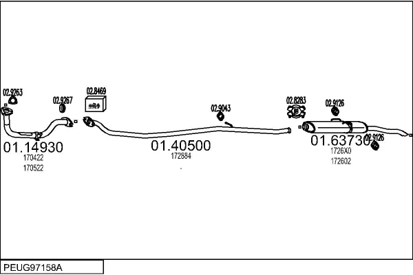 PEUGEOT 309 Schránky/šikmá záď (10S, 3S) 1.1 - Výfukový systém - kompletní od 9/1989 do 10/1993, 1124 ccm, 40 kW, 54 hp, H1B (TU1), Schránky/šikmá záď