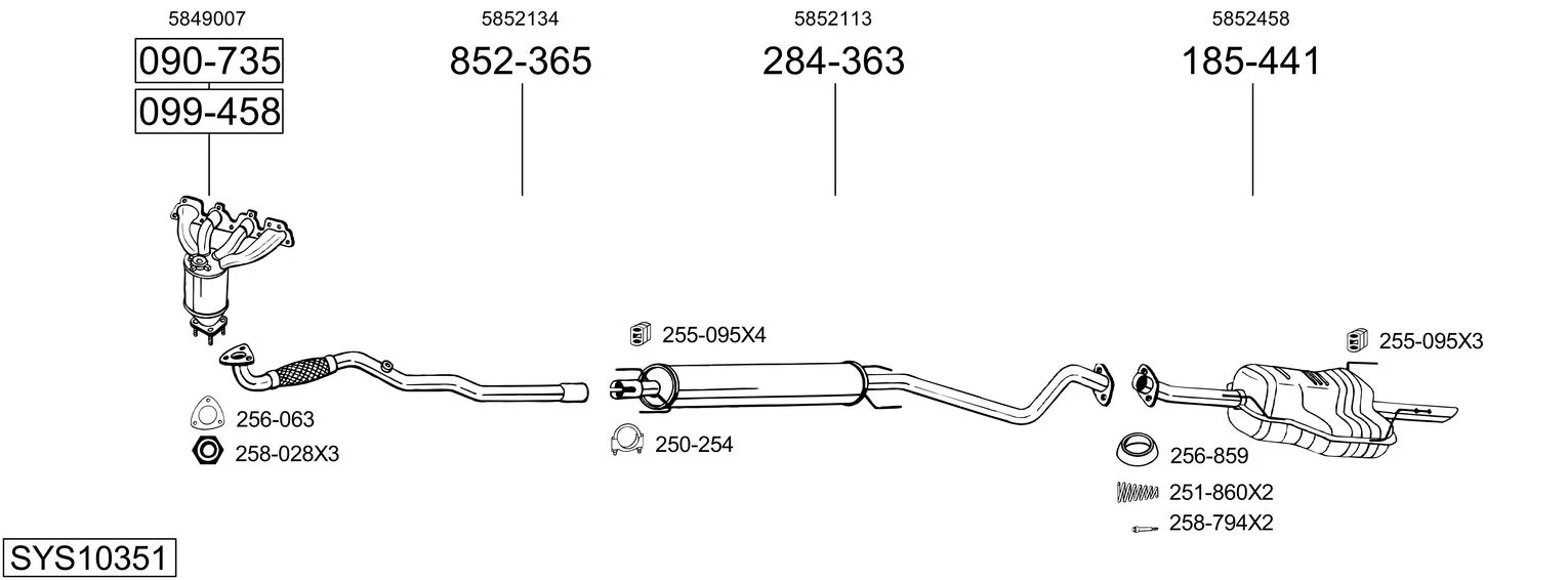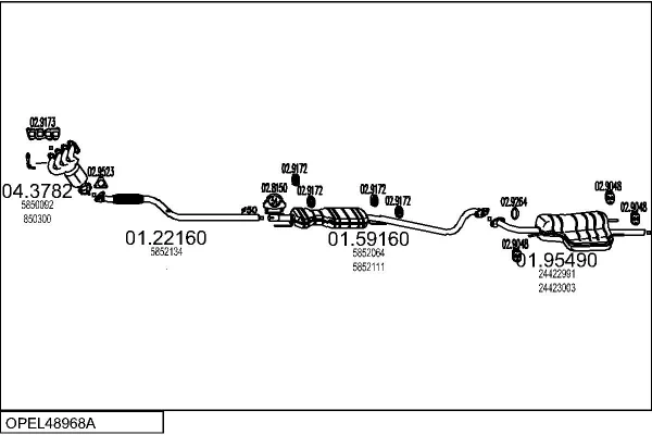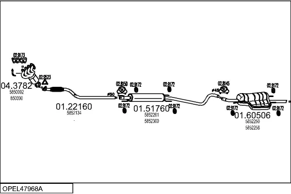 OPEL ASTRA G karoserie/kombi (F70) 1.6 (F70) - Výfukový systém - kompletní od 9/1998 do 1/2004, 1598 ccm, 74 kW, 101 hp, C 16 SEL, Z 16 XE, karoserie/kombi