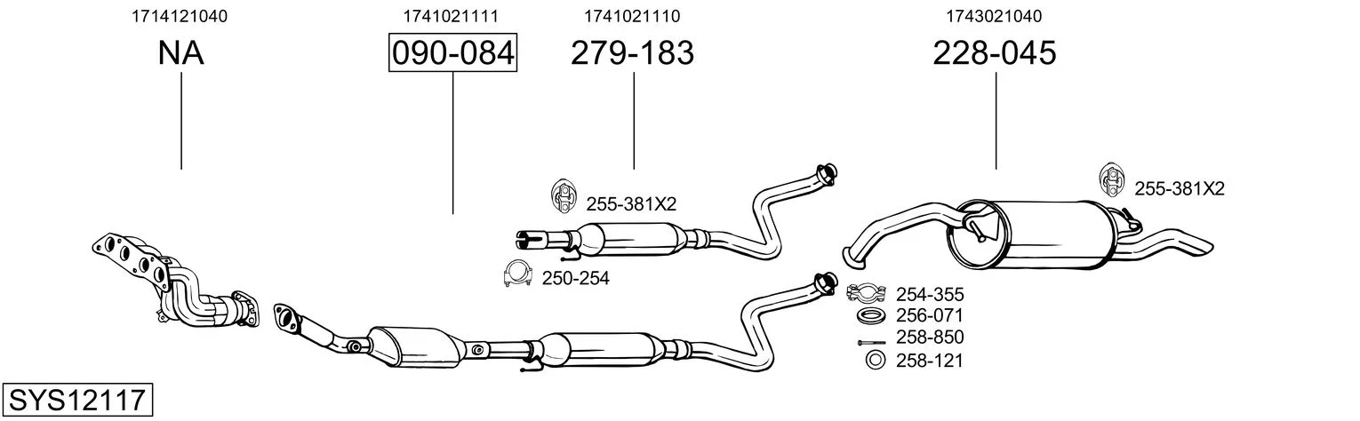 TOYOTA YARIS VERSO VAN (_P2_) 1.3 VVTi (NCP22_) - Výfukový systém - kompletní od 3/2000 do 9/2005, 1299 ccm, 63 kW, 86 hp, 2NZ-FE, Schránky/šikmá záď