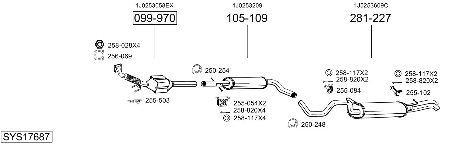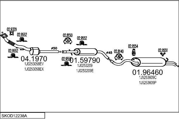 SKODA OCTAVIA I karoserie/kombi (1U5) 1.9 D - Výfukový systém - kompletní od 8/2000 do 12/2003, 1896 ccm, 50 kW, 68 hp, AQM, karoserie/kombi