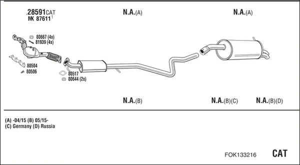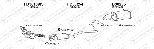FORD FIESTA limuzína 1.6 Ti - Výfukový systém - kompletní od 3/2015 do 4/2017, 1596 ccm, 77 kW, 105 hp, IQJA, IQJC, IQJE, limuzína
