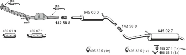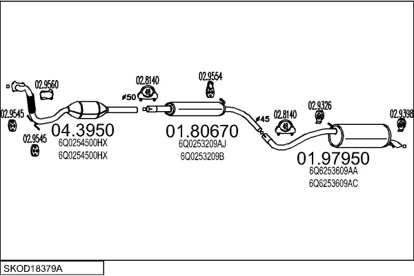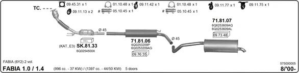 SKODA FABIA I (6Y2) 1.4 - Výfukový systém - kompletní od 8/1999 do 5/2003, 1397 ccm, 50 kW, 68 hp, AME, AQW, ATZ, Šikmá zadní část