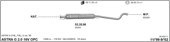 OPEL ASTRA G Šikmá zadní část (T98) 2.0 16V OPC (F08, F48) - Výfukový systém - kompletní od 11/1999 do 9/2002, 1998 ccm, 118 kW, 160 hp, X 20 XER, Šikmá zadní část