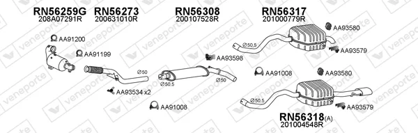 RENAULT MEGANE IV Grandtour (K9A/M/N_) 1.3 TCe 100 (K9N8) - Výfukový systém - kompletní od 8/2018, 1332 ccm, 75 kW, 100 hp, H5H 470, kombi
