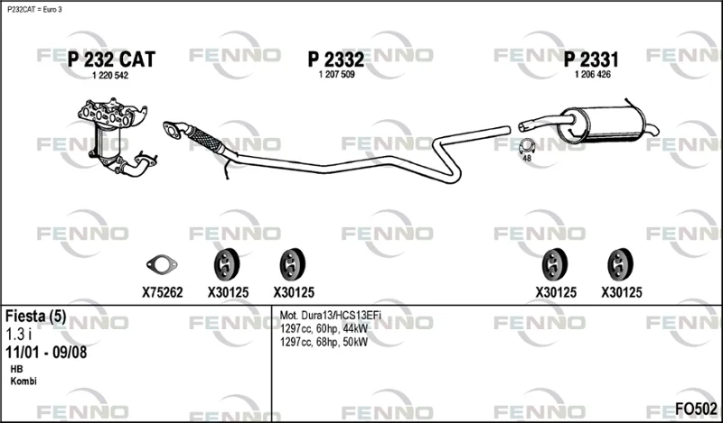 FORD FIESTA V Van 1.3 - Výfukový systém - kompletní od 5/2002 do 8/2008, 1299 ccm, 44 kW, 60 hp, BAJA, Schránky/šikmá záď