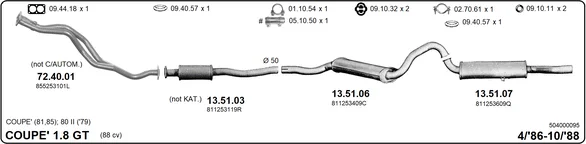 AUDI COUPE B2 (81, 855, 856) 1.8 GT - Výfukový systém - kompletní od 4/1986 do 10/1988, 1781 ccm, 65 kW, 88 hp, SF, kupé