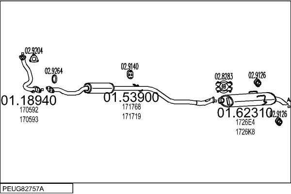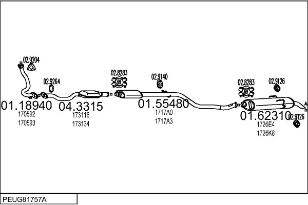 PEUGEOT 106 Van II Schránky/šikmá záď (1S_) 1.5 D - Výfukový systém - kompletní od 5/1996 do 3/2001, 1527 ccm, 40 kW, 55 hp, VJY (TUD5), Schránky/šikmá záď
