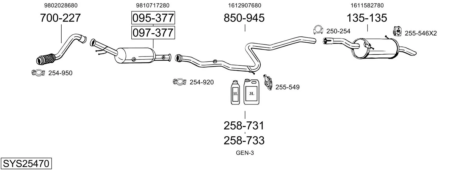 PEUGEOT PARTNER valník/podvozek 1.6 BlueHDi 100 - Výfukový systém - kompletní od 4/2015, 1560 ccm, 73 kW, 100 hp, BHY (DV6FD), valník/podvozek