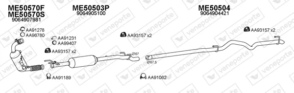 MERCEDES-BENZ SPRINTER 5-t Krabice (B907) 519 CDI pohon na 4 kola (907.653, 907.655, 907.657) - Výfukový systém - kompletní od 1/2019 do 12/2021, 2987 ccm, 140 kW, 190 hp, OM 642.899, Krabice