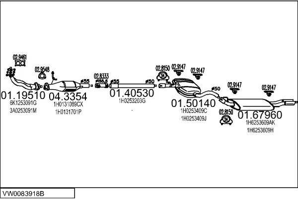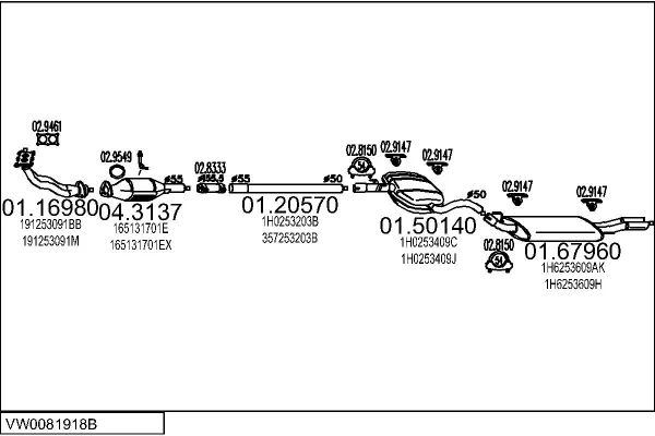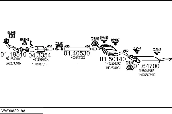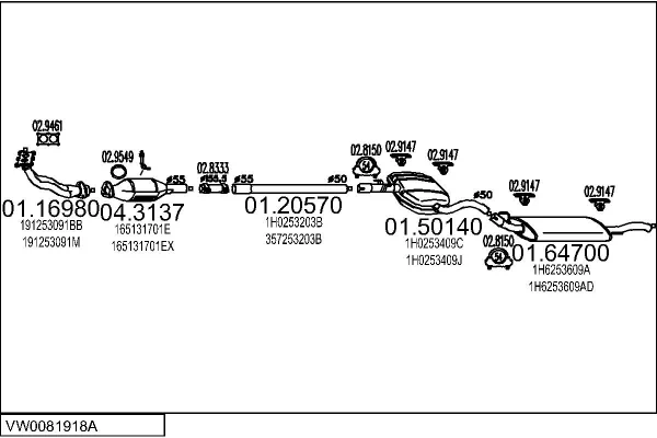 VW GOLF III Van (1H1) 2.0 - Výfukový systém - kompletní od 8/1995 do 9/1997, 1984 ccm, 85 kW, 116 hp, AGG, Schránky/šikmá záď