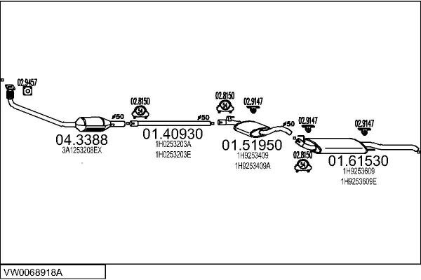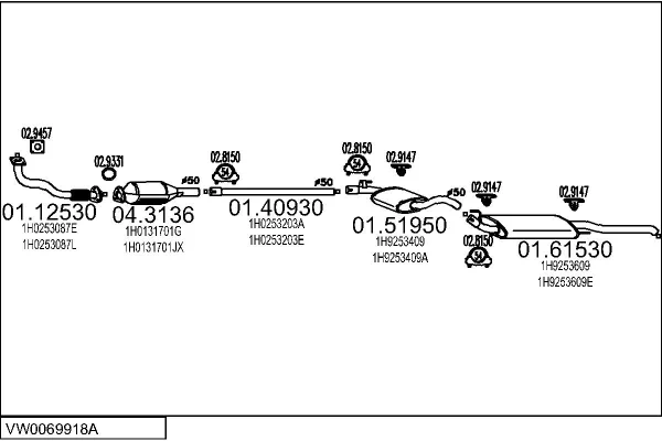 VW GOLF Van III Variant (1H5) 1.8 - Výfukový systém - kompletní od 8/1993 do 12/1999, 1781 ccm, 66 kW, 90 hp, ABS, ADZ, karoserie/kombi