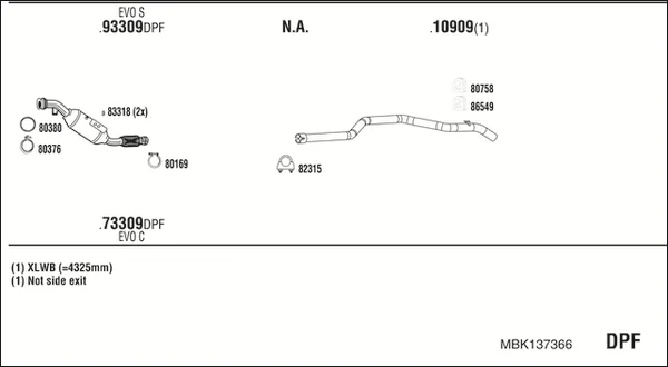 MERCEDES-BENZ SPRINTER 4-t valník/podvozek (B907, B910) 414 CDI pohon na 4 kola (907.143, 907.145, 907.243,... - Výfukový systém - kompletní od 1/2019 do 12/2021, 2143 ccm, 105 kW, 143 hp, OM 651.958, valník/podvozek