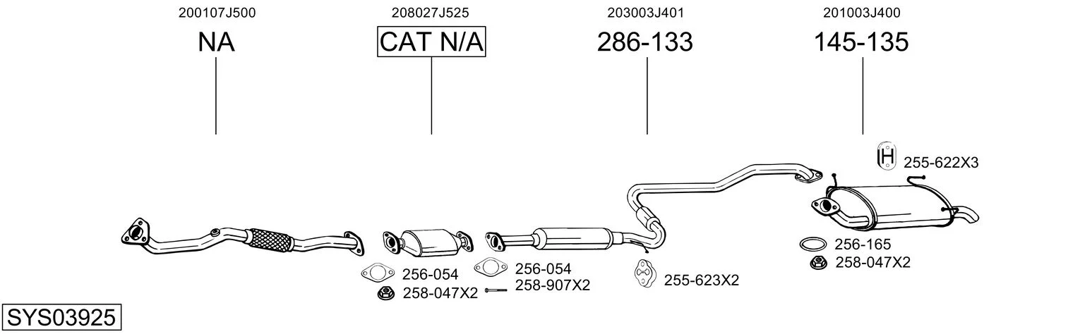 NISSAN PRIMERA Hatchback (P11) 2.0 16V - Výfukový systém - kompletní od 8/1999 do 7/2002, 1998 ccm, 103 kW, 140 hp, SR20DE, Šikmá zadní část