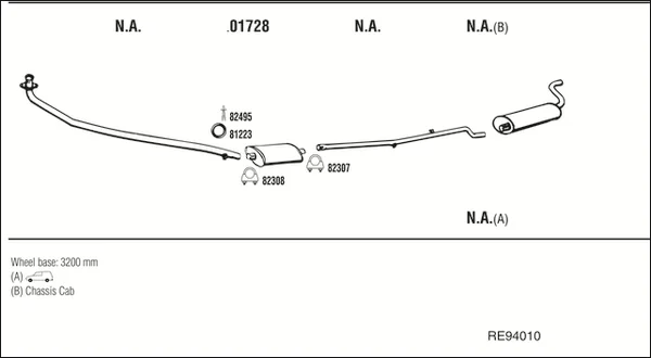 RENAULT TRAFIC valník/podvozek (T_, P_, V_) 1.4 - Výfukový systém - kompletní od 3/1980 do 4/1989, 1397 ccm, 35 kW, 48 hp, 847 700, C1J 700, valník/podvozek