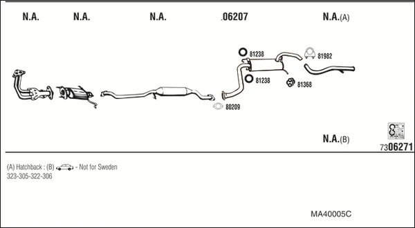 MAZDA 323 II limuzína (BD) 1.5 (BD105) - Výfukový systém - kompletní od 5/1981 do 12/1985, 1490 ccm, 55 kW, 75 hp, E5, limuzína