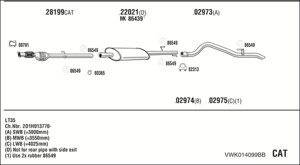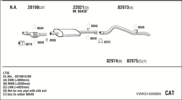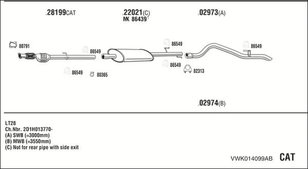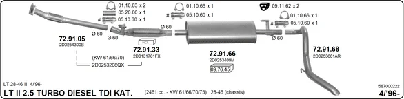 VW LT 28-46 II valník/podvozek (2DC, 2DF, 2DG, 2DL, 2DM) 2.5 TDI - Výfukový systém - kompletní od 5/1999 do 7/2006, 2461 ccm, 66 kW, 90 hp, APA, valník/podvozek