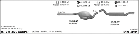 AUDI 90 B3 (893, 894, 8A2) 2.0 20 V - Výfukový systém - kompletní