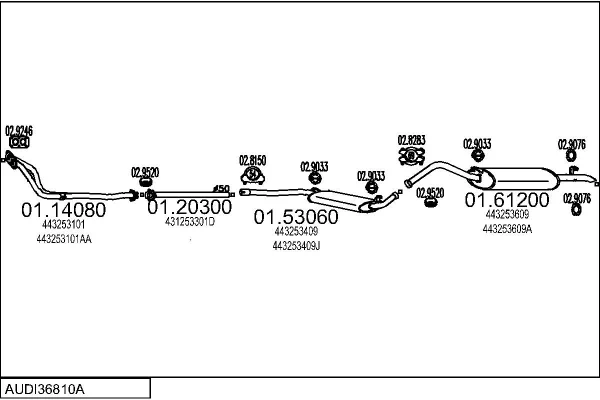 AUDI 100 C3 Avant (445, 446) 1.8 - Výfukový systém - kompletní od 8/1982 do 12/1987, 1781 ccm, 55 kW, 75 hp, DR, RS, kombi
