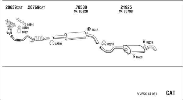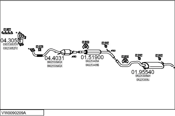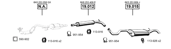 VW POLO III CLASSIC (6V2) 75 1.4 16V - Výfukový systém - kompletní od 10/1999 do 9/2001, 1390 ccm, 55 kW, 75 hp, APE, AUA, limuzína