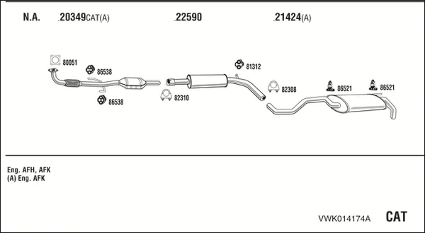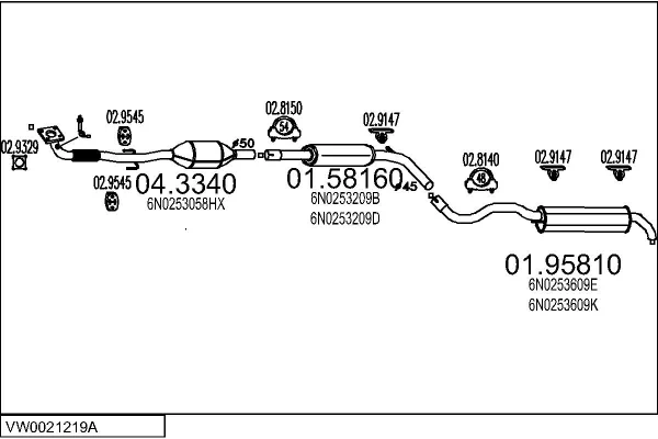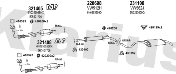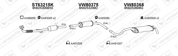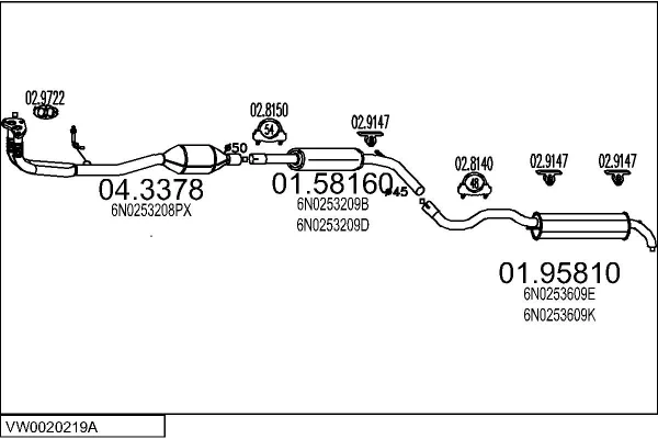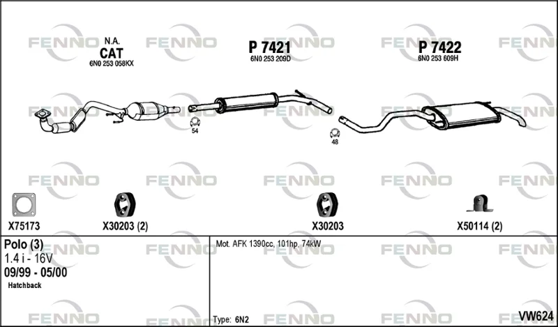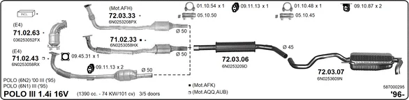 VW POLO (6N2) 1.4 16V - Výfukový systém - kompletní od 10/1999 do 9/2001, 1390 ccm, 74 kW, 101 hp, AFK, AQQ, AUB, Šikmá zadní část