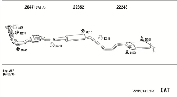 VW POLO (6N2) 1.9 D - Výfukový systém - kompletní od 10/1999 do 9/2001, 1896 ccm, 47 kW, 64 hp, AEF, Šikmá zadní část