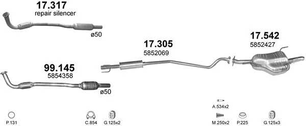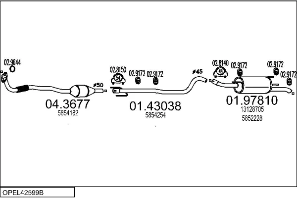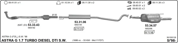 OPEL ASTRA G kombi (T98) 1.7 DTI 16V (F35) - Výfukový systém - kompletní od 2/2000 do 7/2004, 1686 ccm, 55 kW, 75 hp, Y 17 DT, kombi