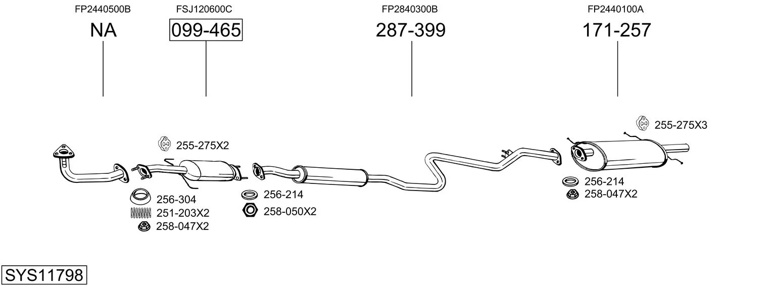 MAZDA 626 V (GF) 1.9 - Výfukový systém - kompletní od 12/1999 do 10/2002, 1840 ccm, 74 kW, 100 hp, FP9A, limuzína