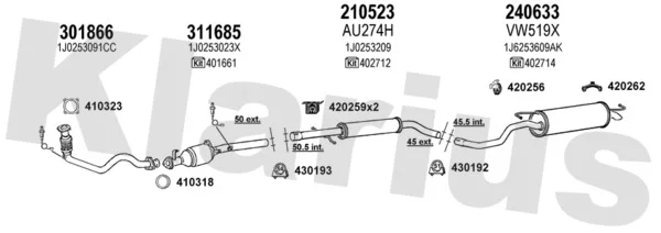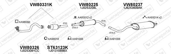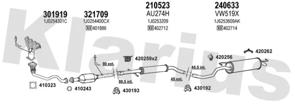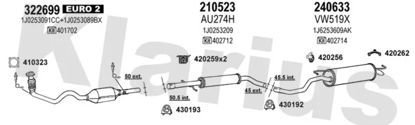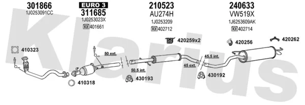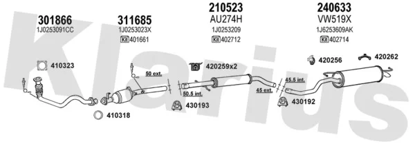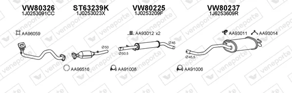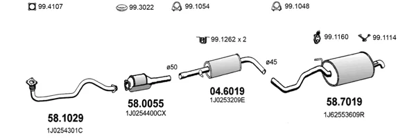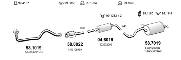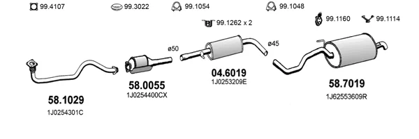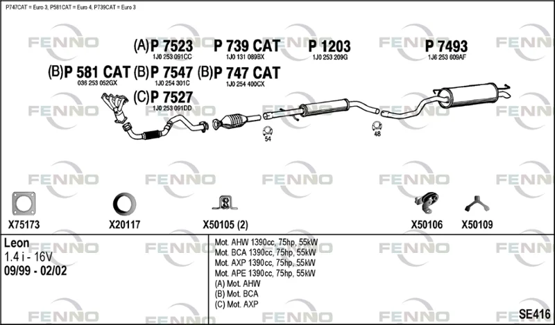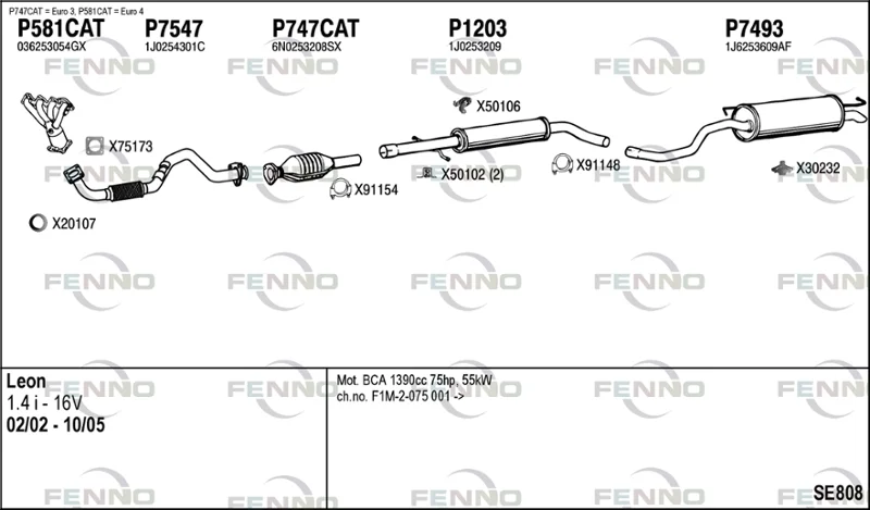SEAT LEON (1M1) 1.4 16V - Výfukový systém - kompletní od 11/1999 do 6/2006, 1390 ccm, 55 kW, 75 hp, AHW, APE, AXP, BCA, Šikmá zadní část