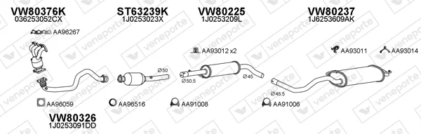 SEAT LEON (1M1) 1.4 16V - Výfukový systém - kompletní od 11/1999 do 6/2006, 1390 ccm, 55 kW, 75 hp, AHW, APE, AXP, BCA, Šikmá zadní část