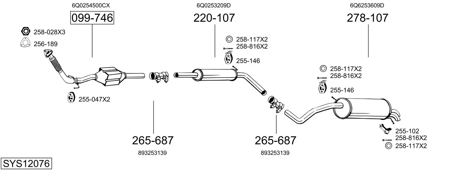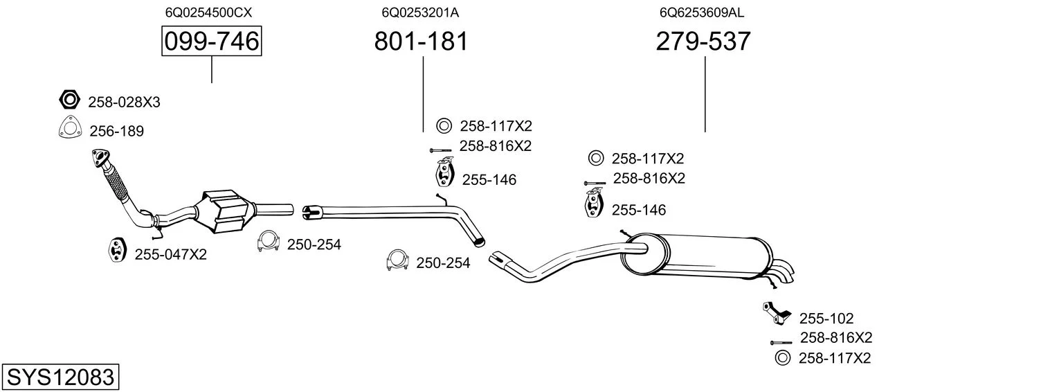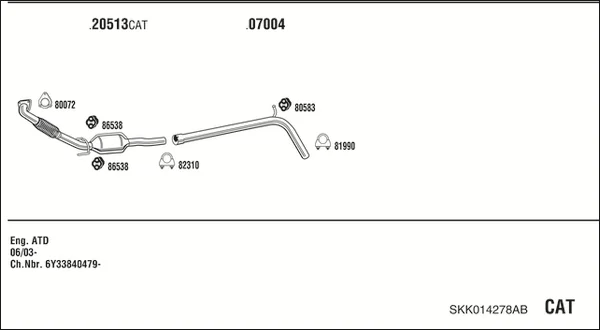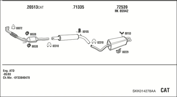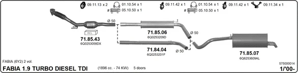 SKODA FABIA I (6Y2) 1.9 TDI - Výfukový systém - kompletní od 1/2000 do 3/2008, 1896 ccm, 74 kW, 100 hp, ATD, AXR, Šikmá zadní část