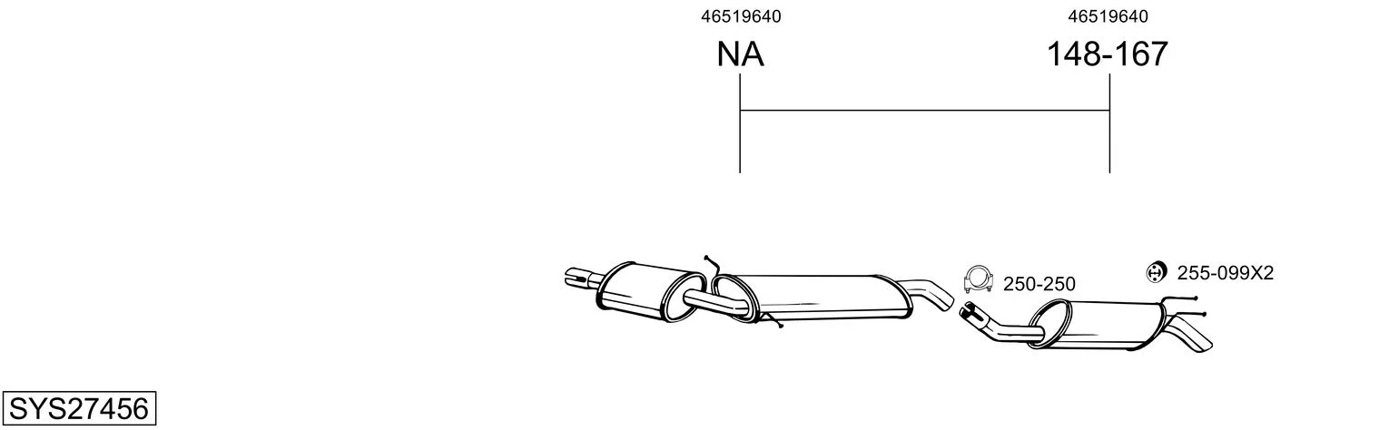 FIAT MULTIPLA VAN (186_) 1.6 (186AXC1A, 186BMC1A, 186BXC1A) - Výfukový systém - kompletní od 9/2000 do 6/2010, 1596 ccm, 76 kW, 103 hp, 182 B6.000, Skříňová/velkoprostorová limuzína