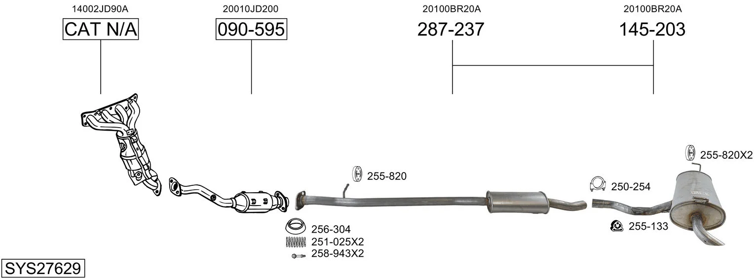 NISSAN QASHQAI / QASHQAI +2 I VAN (J10, JJ10E) 2.0 pohon na 4 kola - Výfukový systém - kompletní od 3/2013 do 4/2014, 1997 ccm, 104 kW, 141 hp, MR20DE, Skříň/SUV