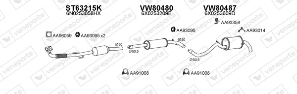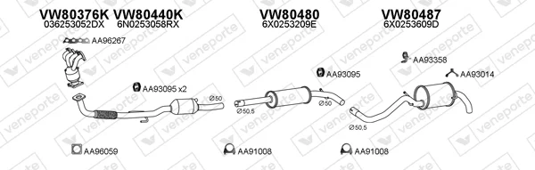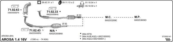 SEAT AROSA (6H1) 1.4 16V - Výfukový systém - kompletní od 1/2000 do 6/2004, 1390 ccm, 74 kW, 100 hp, AFK, AQQ, AUB, Šikmá zadní část