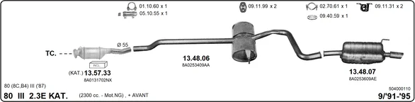 AUDI 80 B4 Avant (8C5) 2.3 E - Výfukový systém - kompletní od 7/1992 do 1/1996, 2309 ccm, 98 kW, 133 hp, NG, kombi