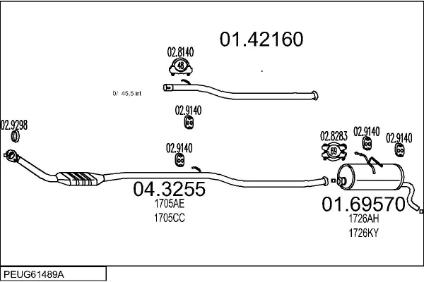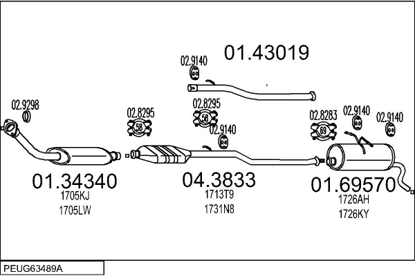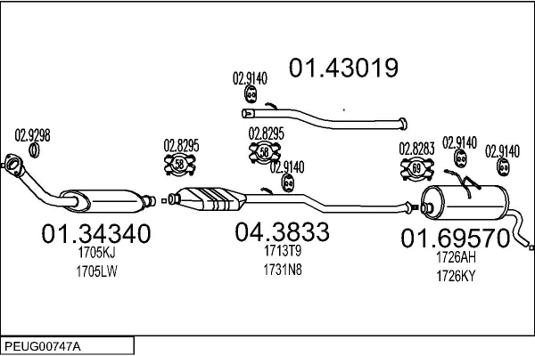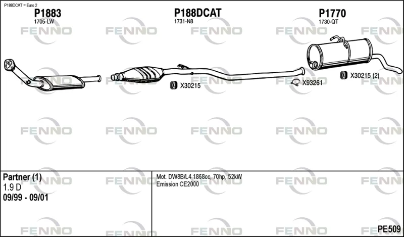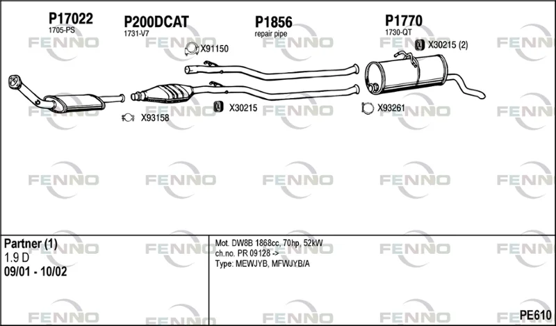 PEUGEOT PARTNER velkoprostorová limuzína (5_, G_) 1.9 D - Výfukový systém - kompletní od 1/1999 do 7/2008, 1868 ccm, 51 kW, 69 hp, WJY (DW8B), WJZ (DW8), velkoprostorová limuzína