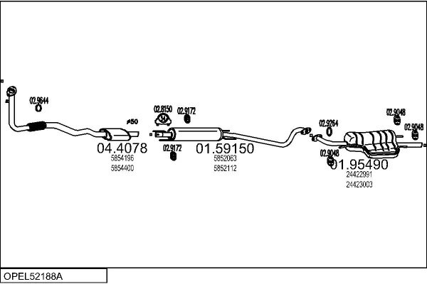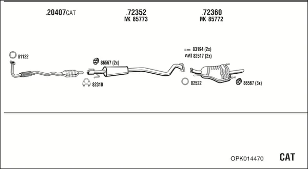 OPEL ASTRA G karoserie/kombi (F70) 1.6 (F70) - Výfukový systém - kompletní od 1/1999 do 9/2000, 1598 ccm, 55 kW, 75 hp, X 16 SZR, karoserie/kombi