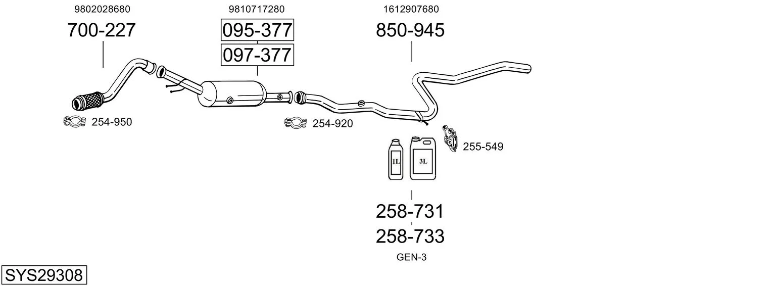 PEUGEOT 5008 (0U_, 0E_) 1.6 BlueHDi 115 - Výfukový systém - kompletní od 11/2014 do 3/2017, 1560 ccm, 85 kW, 116 hp, BHX (DV6FC), velkoprostorová limuzína